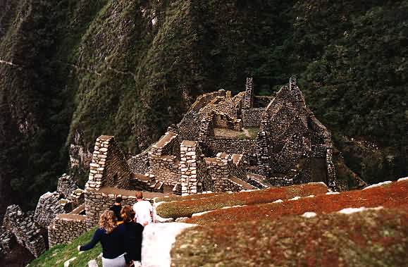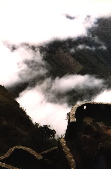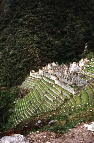 Langzaam komen we over meer en meer 'echte' stukken van de Inca Trail. We begrijpen dat sommige stukken zijn nagebouwd, omdat lang niet overal meer kon worden vastgesteld hoe de route gelopen heeft. Lang niet alles wat de Inca's maakten, heeft de tijd dus doorstaan.