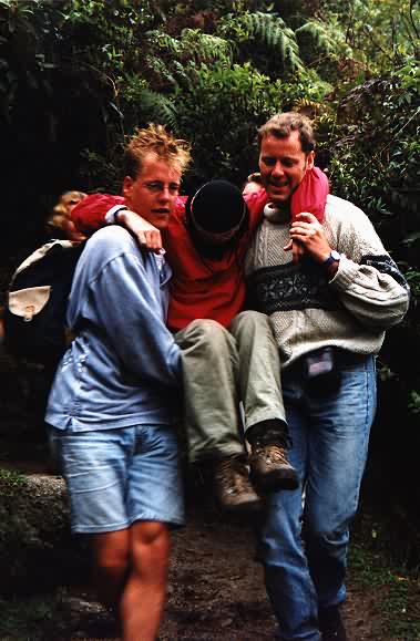 Een eindje verderop is een waterval. Daarvan wordt al sinds de tijd van de Spanjaarden gezegd dat als je er onder gaat staan, je eeuwig jong blijft. Diederick durft het als eerste, Ronald valt er bijna te pletter.